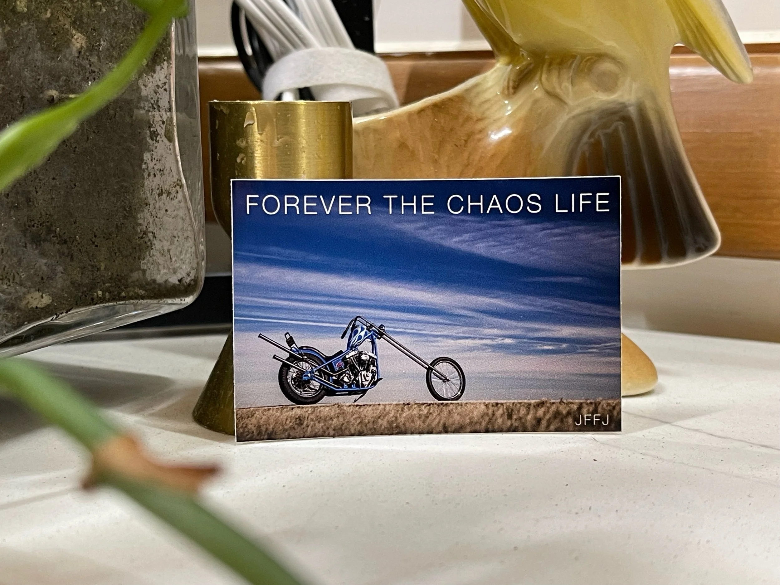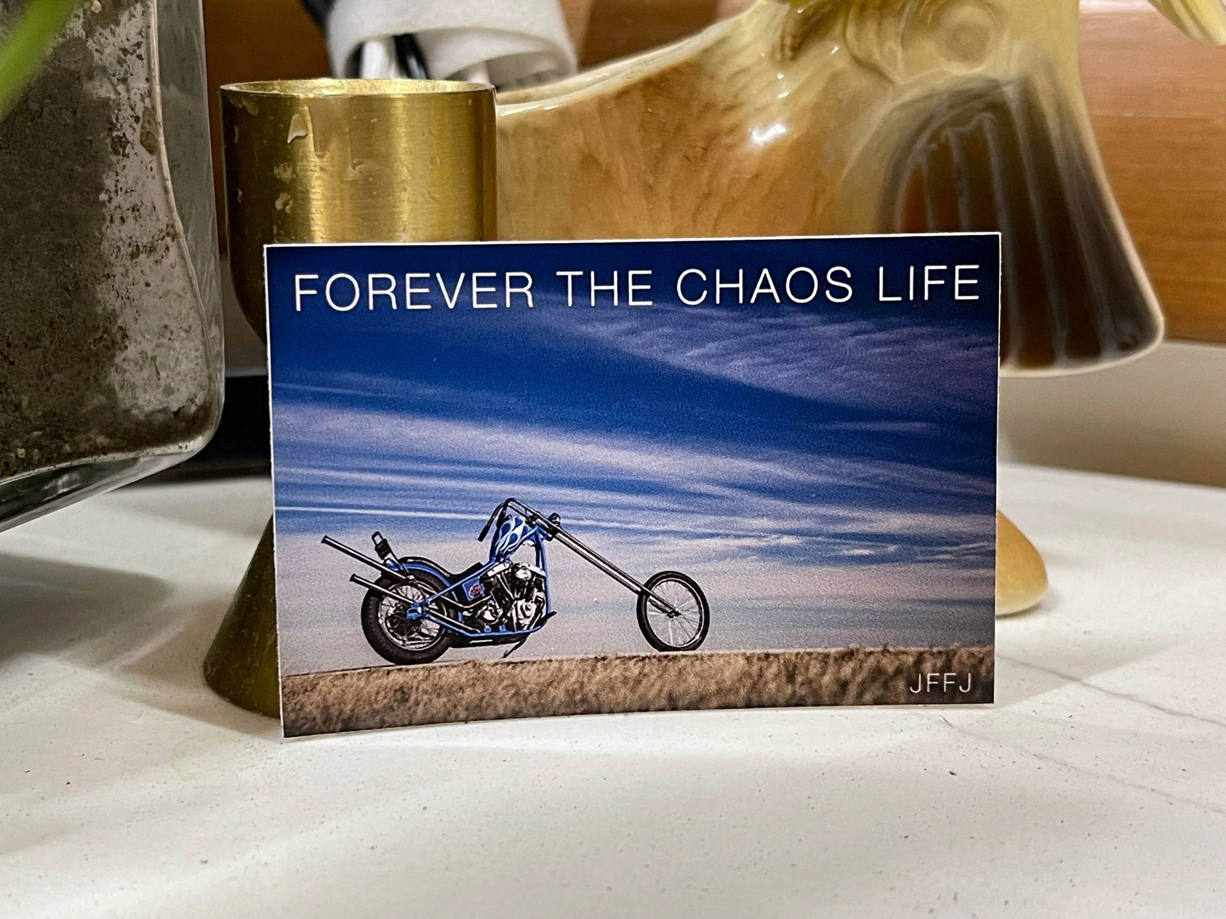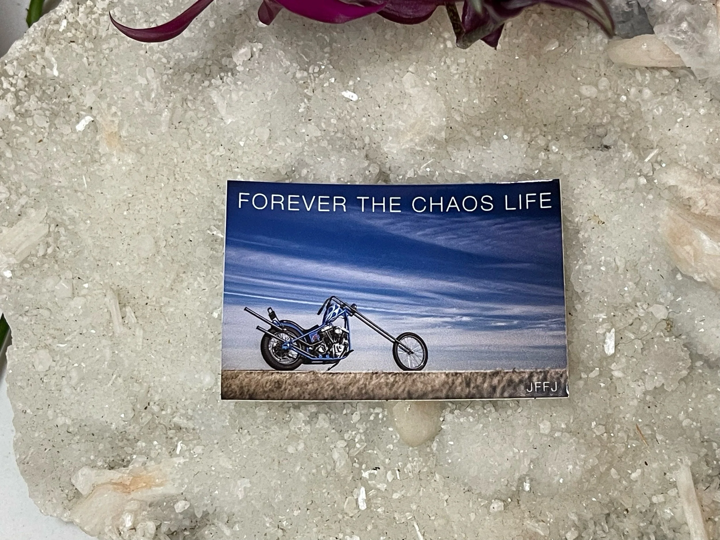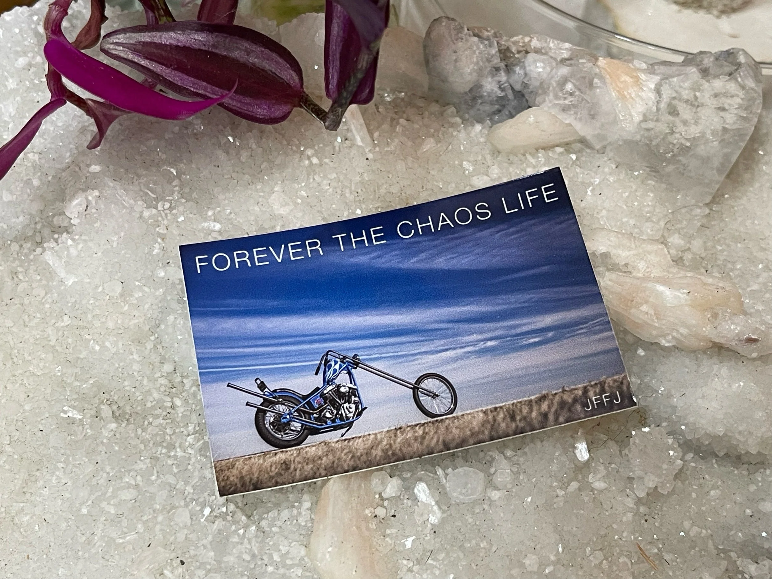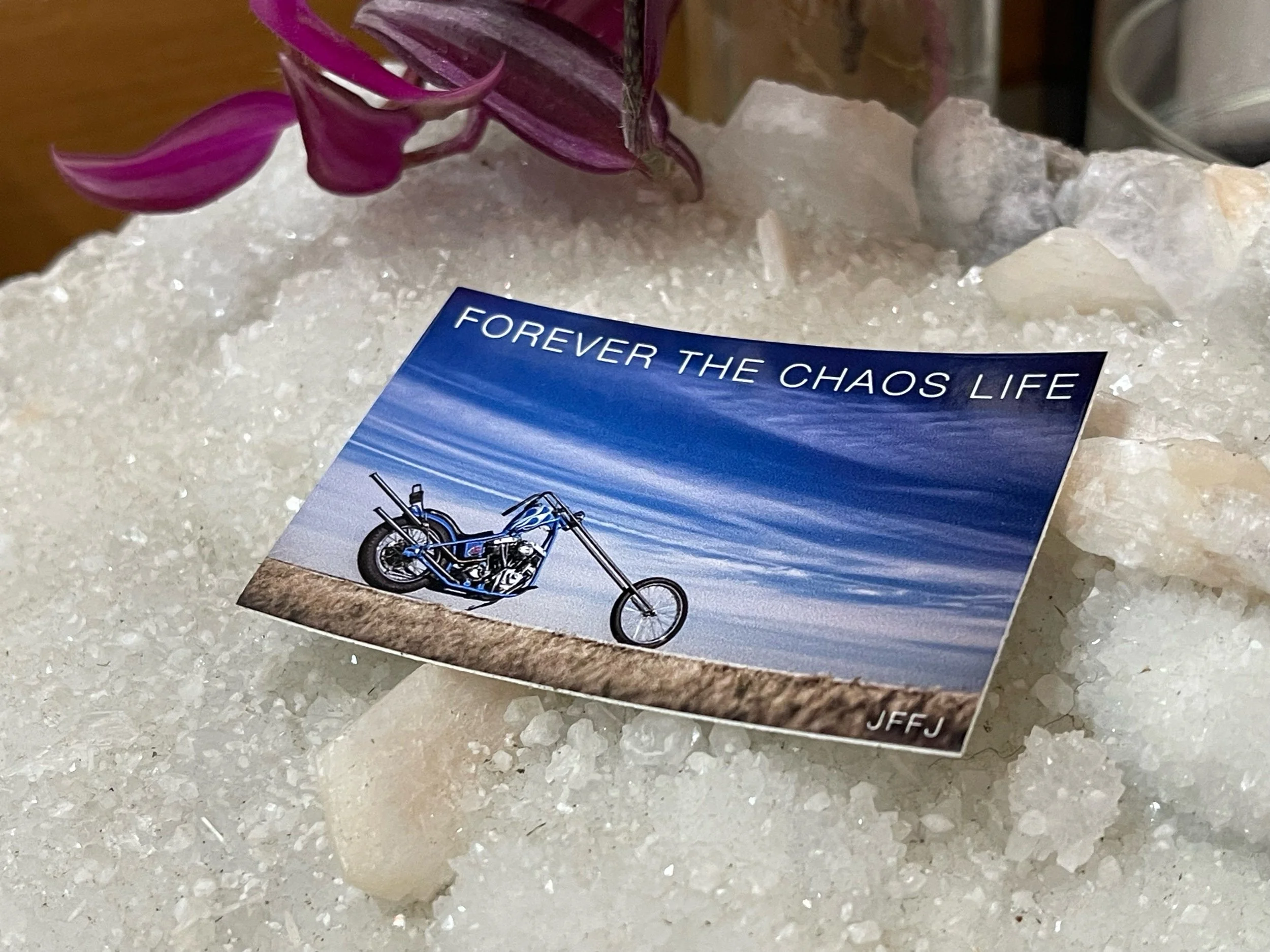 This is a 3”x2” sticker of “The Jart” a beautiful fully rigid chopper built by the late Joel Hauenstein. JFFJ - Joel Forever, Forever Joel